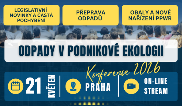 Dne 21. května 2026 se uskuteční odborná konference Odpady v podnikové ekologii, zaměřená na aktuální změny v odpadové legislativě, přepravě odpadů a nové povinnosti vyplývající z nařízení o obalech a obalových odpadech (PPWR).