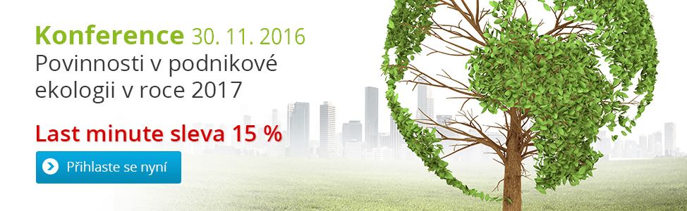 Využijte last minute slevu 15 % na konferenci Povinnosti v podnikové ekologii v roce 2017, která se uskuteční 30. 11. 2016 v Praze a věnovat se bude odpadům, jejich materiálovým tokům a vlivu na životní prostředí z pohledu podniků.