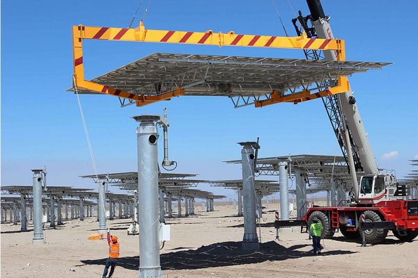Instalace heliostatu na Crescent Dunes